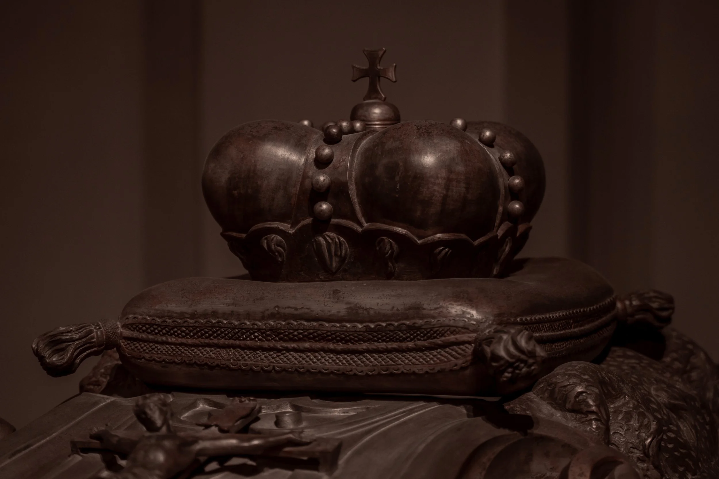 As you descend from the entrance, you enter the first of the crypt’s rooms. Straight ahead, behind a Baroque grille, lies the oldest part known as the Founders’ Crypt, housing two chest-like sarcophagi of the founding couple - Empress Anna and Emperor Matthias. Originally intended only for the couple, the crypt expanded over centuries to accommodate the remains of an ever-growing dynasty.